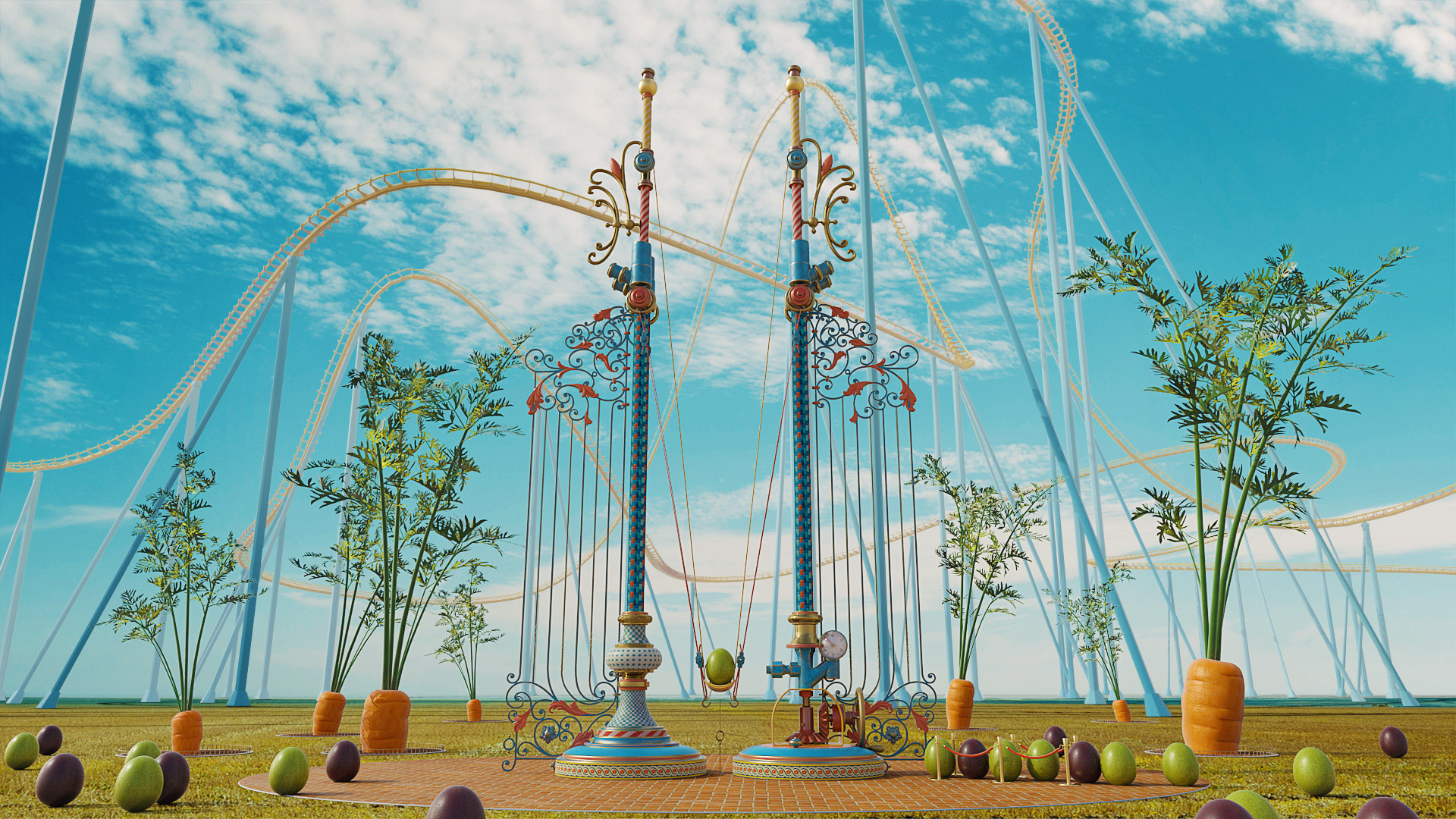 This is a pitch project for a soup brand, the idea behind the styleframes is depicting a story where ingredients are gathered to enjoy tasteful rides within this whimsical and YUMMY AMUSEMENT park.